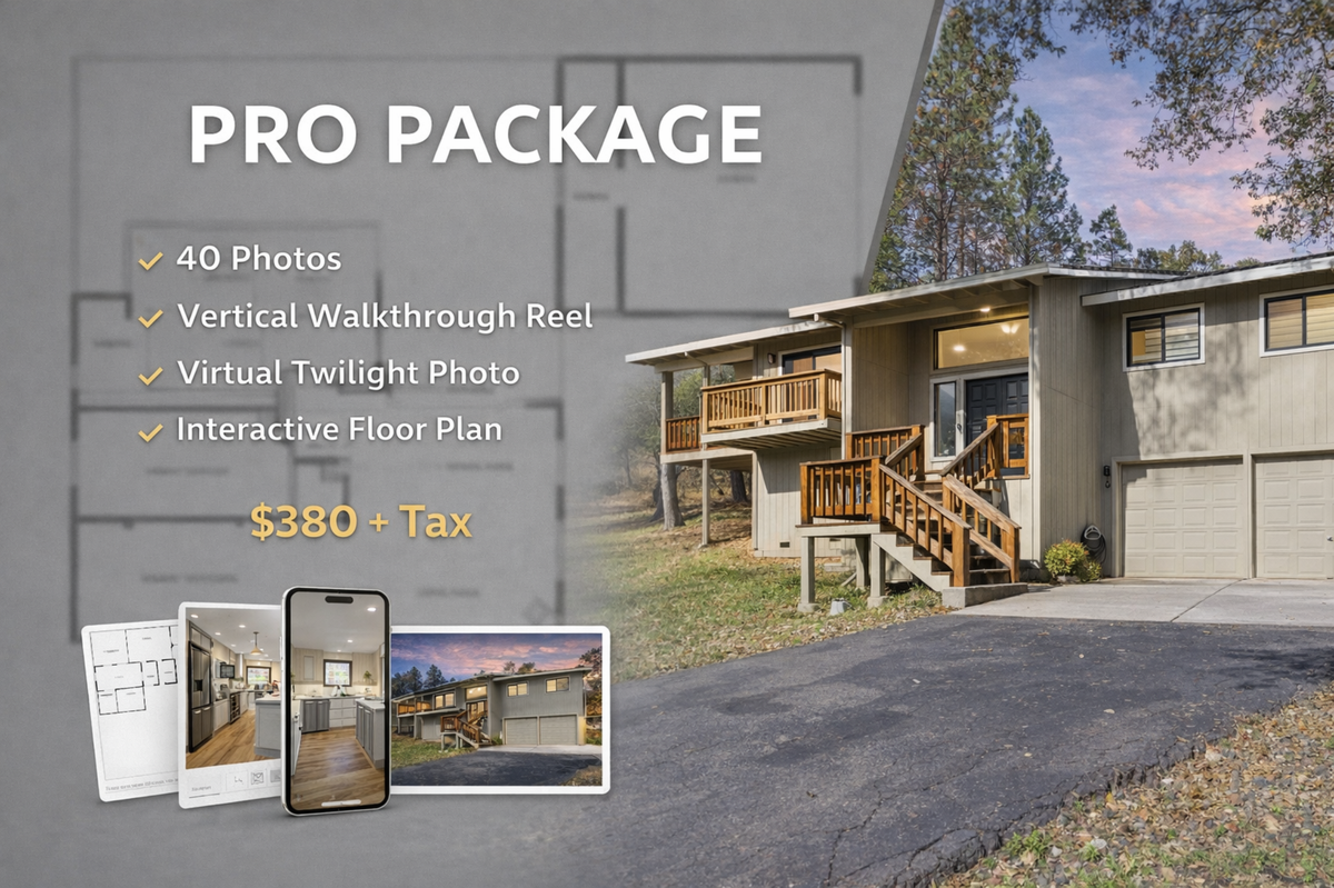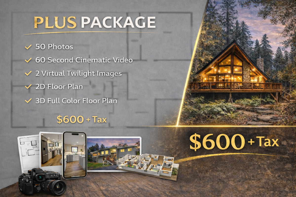 Our most complete listing package for maximum impact. Includes 50 photos, a cinematic listing video, two virtual twilight images, a 2D floor plan, an interactive Alpine Tour floor plan, and a 3D full color floor plan to fully showcase the property.